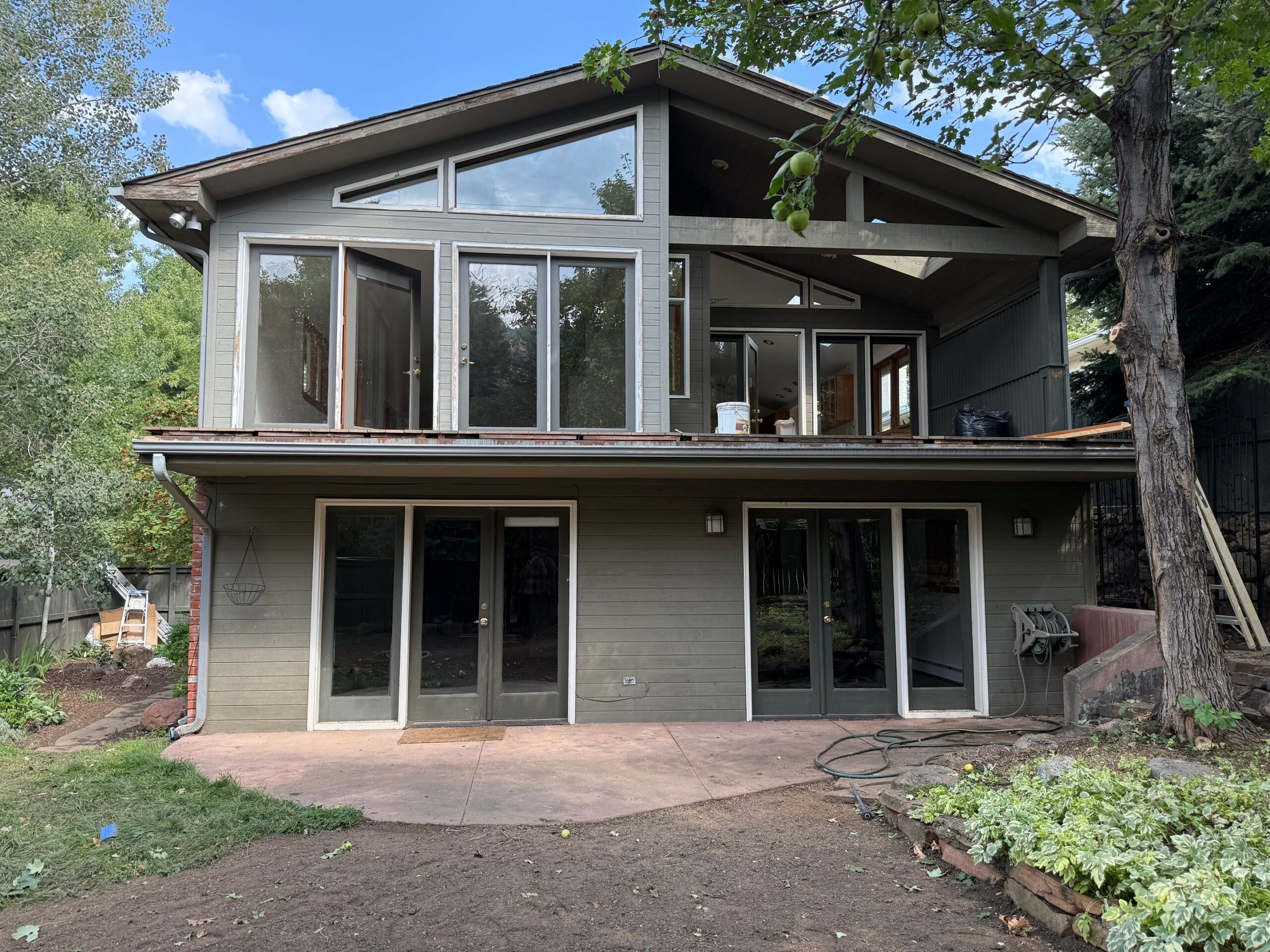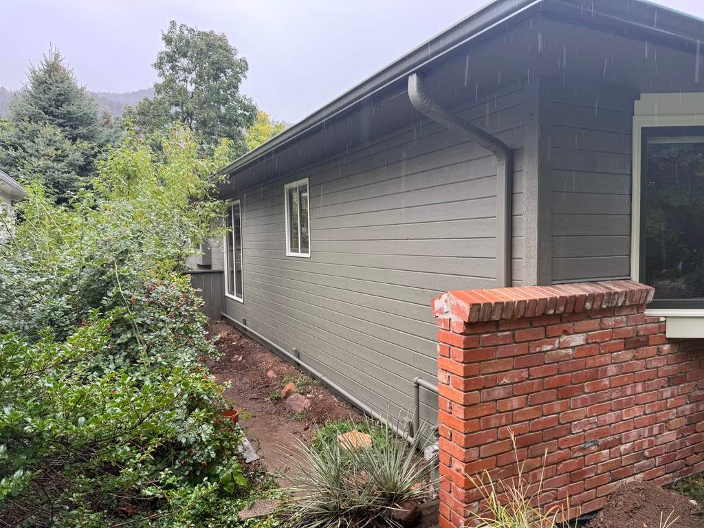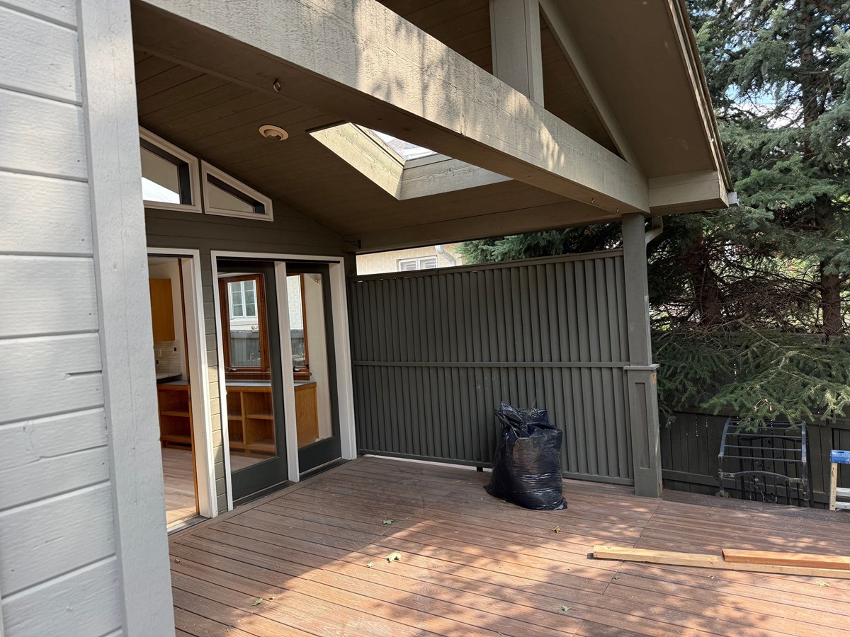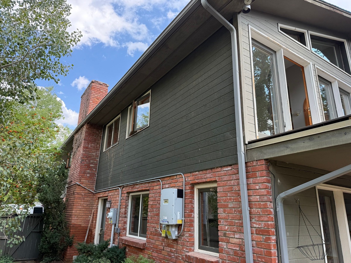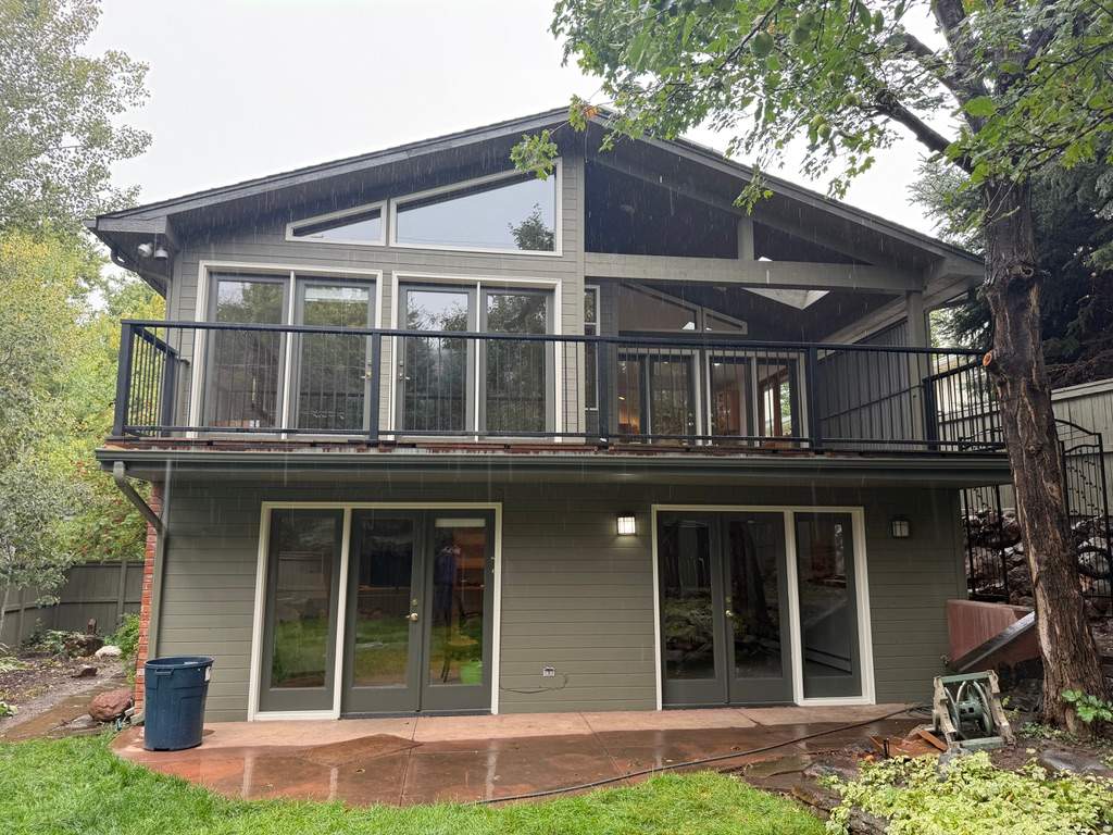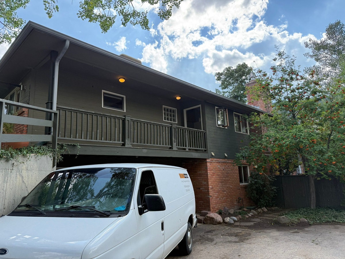 In just four days, Elements Painting Inc. completed a professional exterior refresh of this Boulder rental home. The custom green window sashes and crisp white trim delivered a striking contrast against the freshly stained siding.